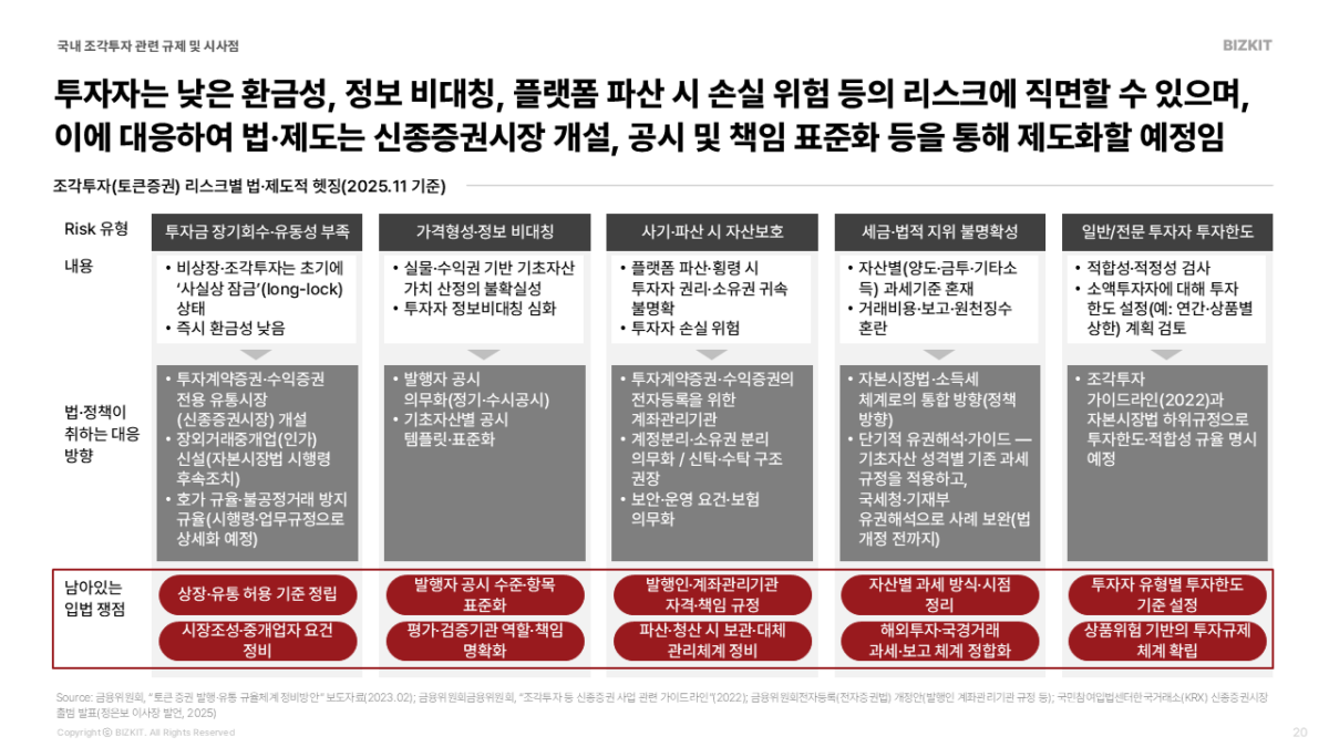 - 증권성 판단, 수탁 구조, 리스크 헷징을 선제적으로 설계해야 2026년 본인가 시장에 진입할 수 있습니다.