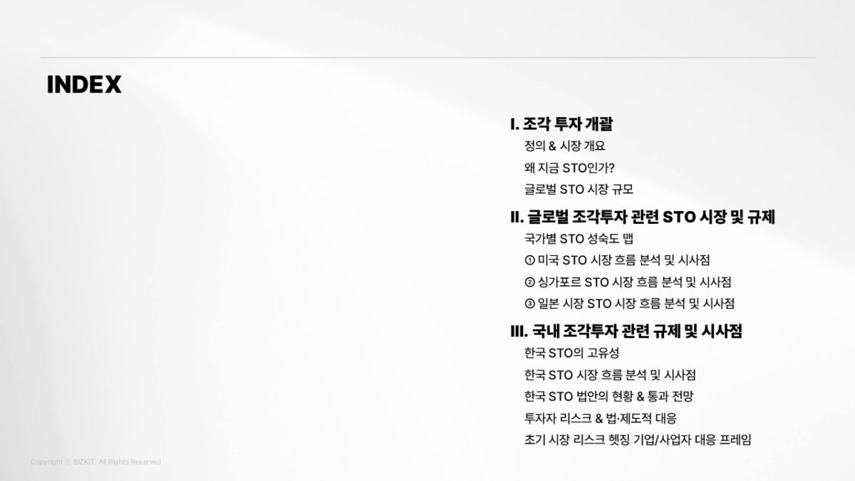 보고서의 흐름은 ‘현황 파악(STO 개괄) → 시장의 이유(Why Now) → 글로벌 벤치마킹 → 한국형 실행 전략’ 순으로 잡으면 됩니다.