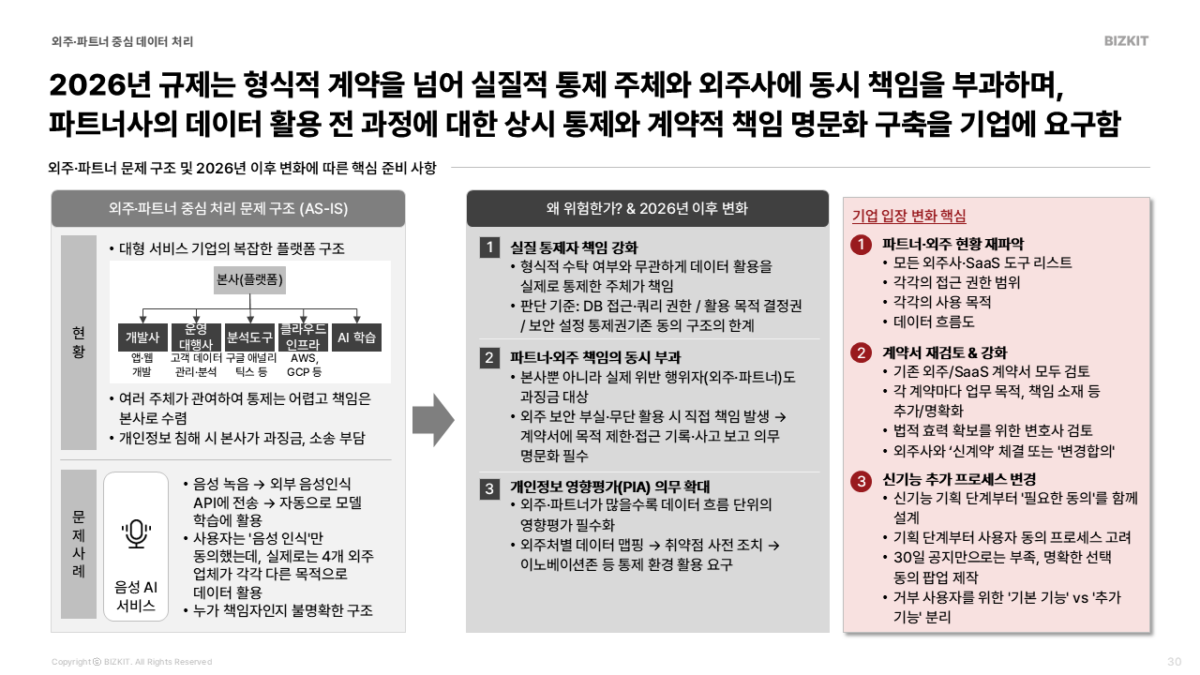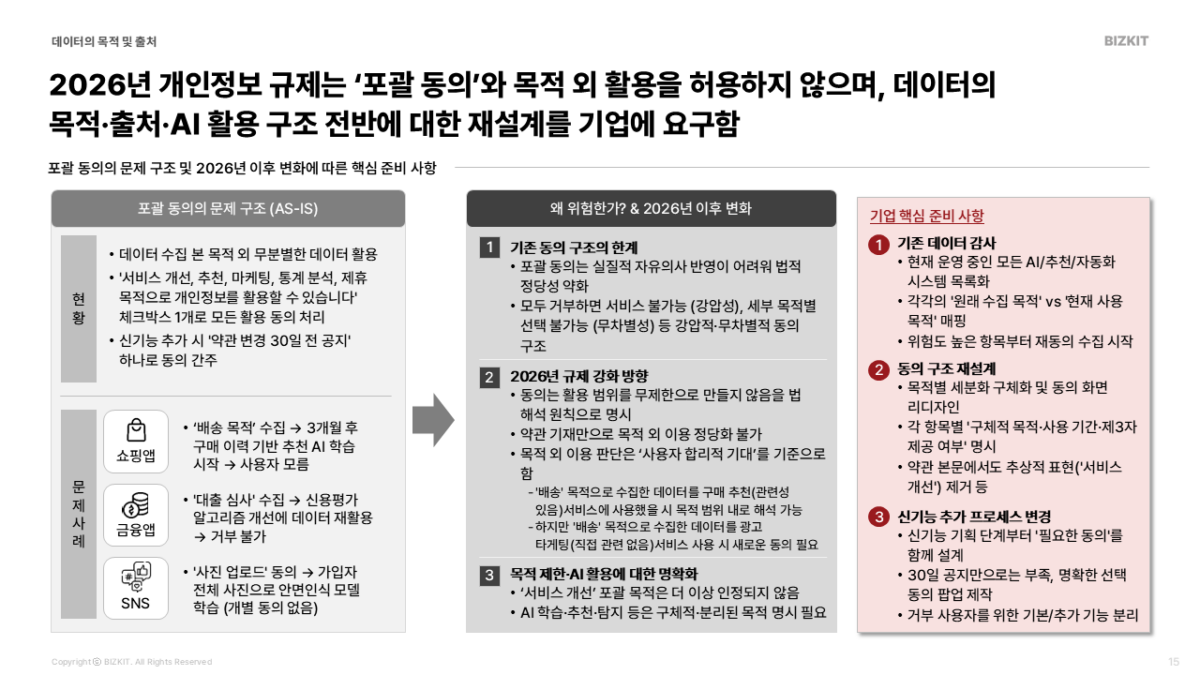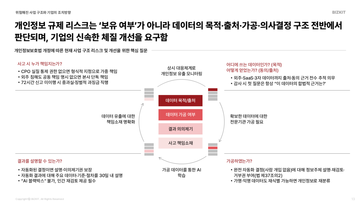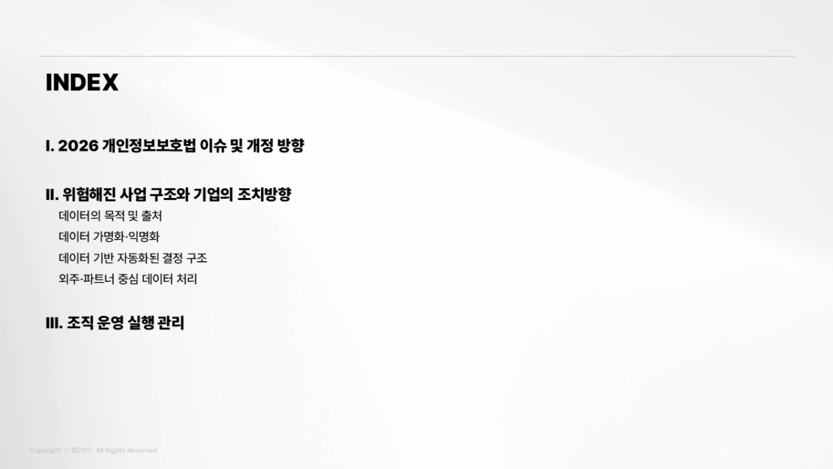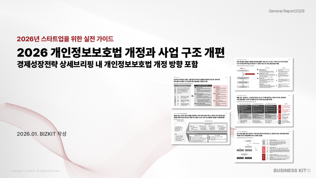 2026년 개인정보보호법 개정으로 위험해진 4가지 사업구조와 기업이 대비하기 위한 실행 Tip을 제시합니다.