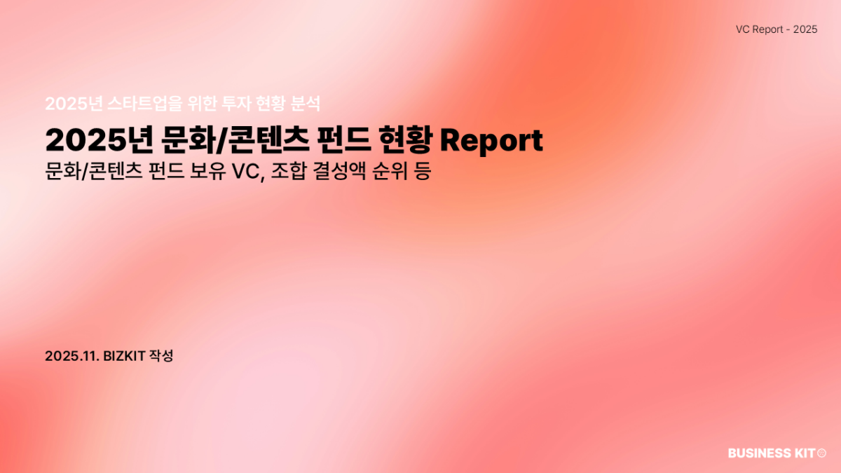 2025년 K-콘텐츠 VC 순위, 펀드 결성 트렌드, 투자 집행률, 대형 펀드 만기 데이터를 바탕으로 문화·엔터테인먼트·영상·음악·게임 분야의 투자 전략 수립, 정책 방향성 분석, 자금 유치 및 협력 네트워크 구축에 실전적으로 활용할 수 있습니다.