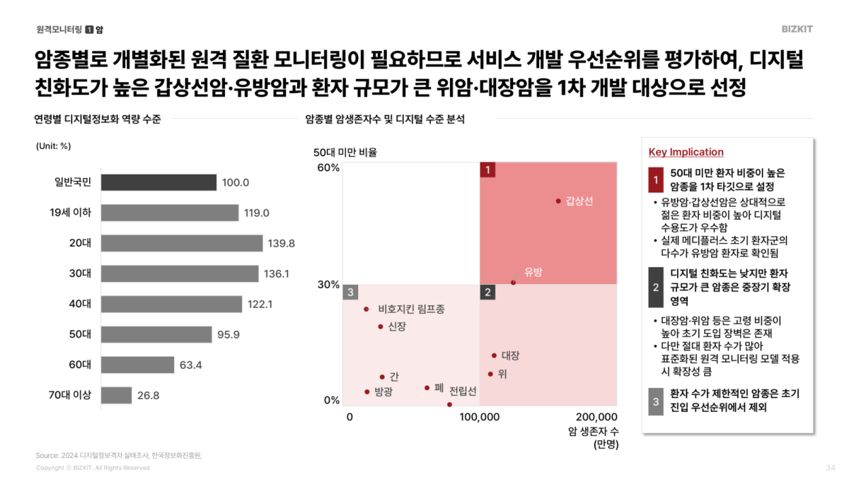 - 50대 미만 비중이 높은 갑상선·유방암은 디지털 친화적