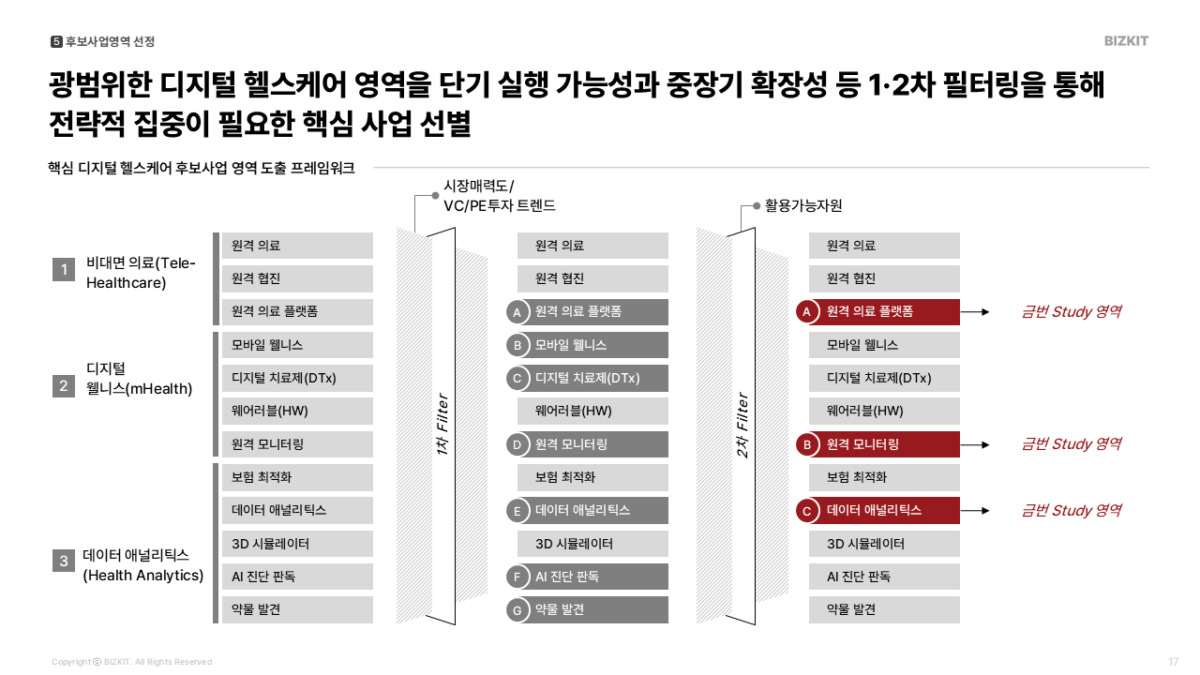 | 광범위한 디지털 헬스케어 영역 중 전략적으로 집중해야 할 핵심 영역은 어디인가? | Yes |