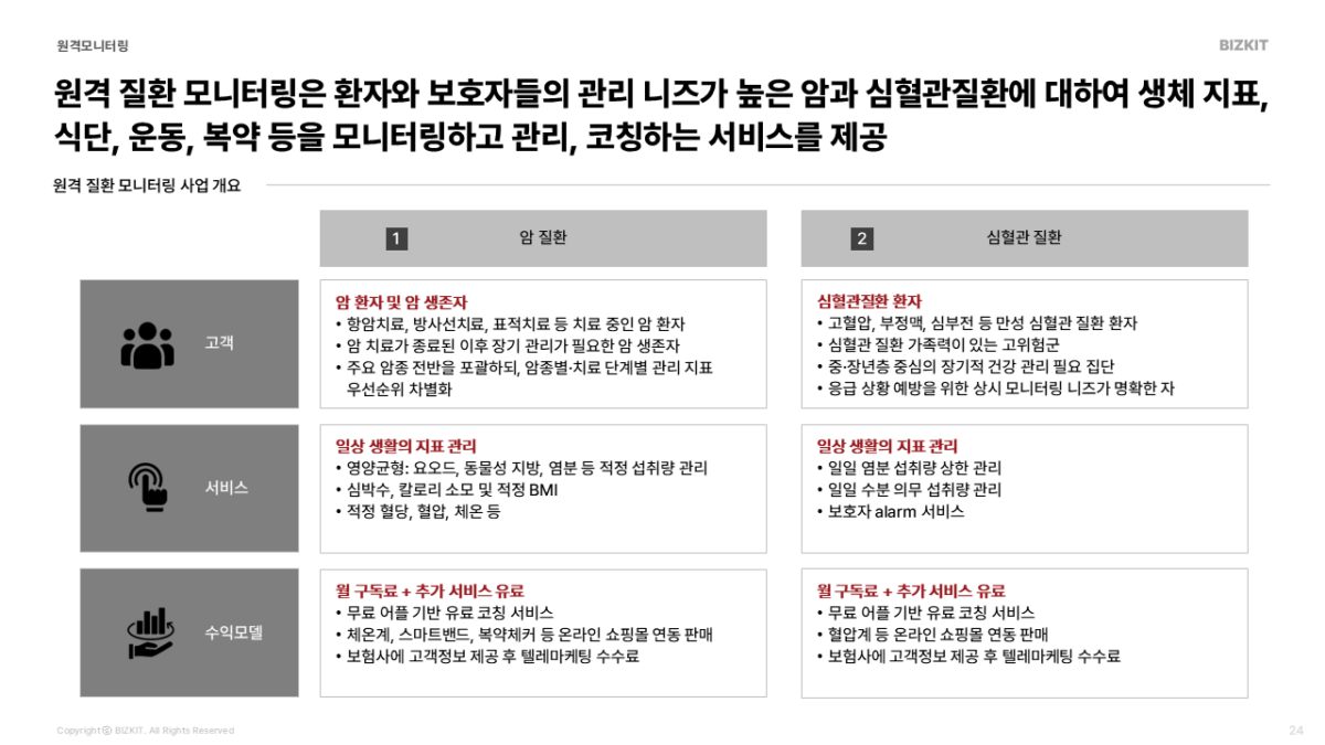 - 원격 질환 모니터링 사업을 위한 인수 후보 기업 리스트
