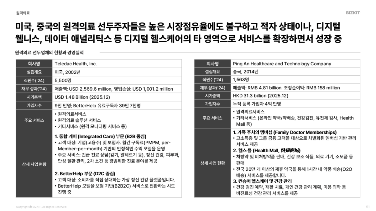 - 원격의료 선두업체의 현황과 경영실적 (Teladoc, Ping An)