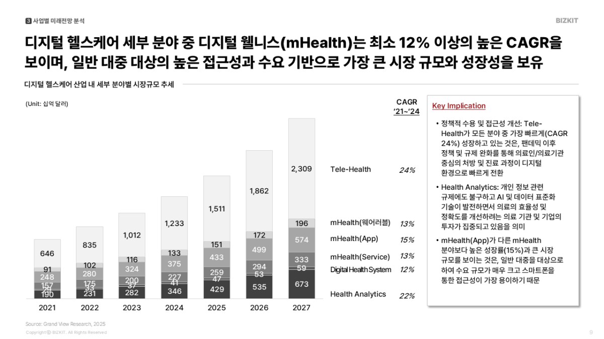 → 모바일 웰니스(mHealth), 데이터 애널리틱스 - 대기업·대형병원에 구조적 우위