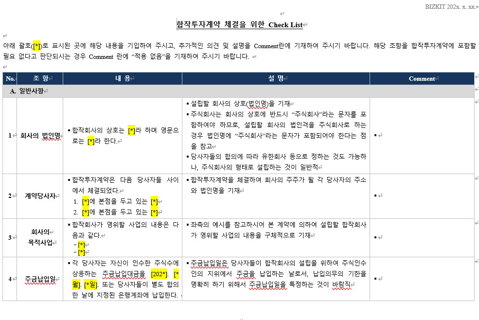 - 회사명A_회사명B_합작투자계약_Check List.docx