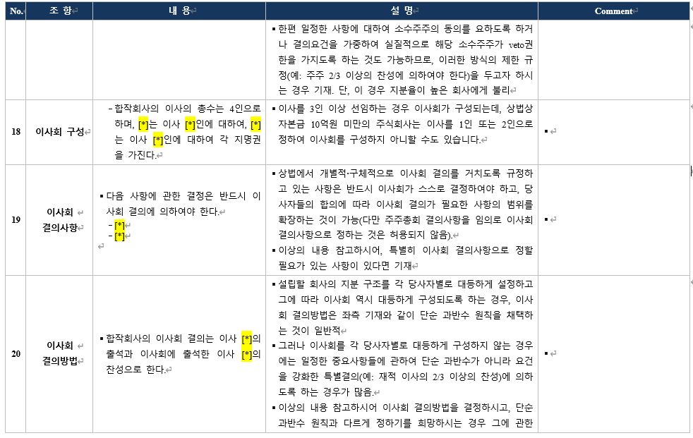 이 부분을 통해 “우리 회사는 JV의 경영을 어느 정도 통제하고 싶은가?”를 구체화할 수 있습니다.