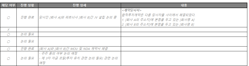 “이번에 ○○사와 JV 설립 검토 들어가야 해. 한번 정리해볼래?”