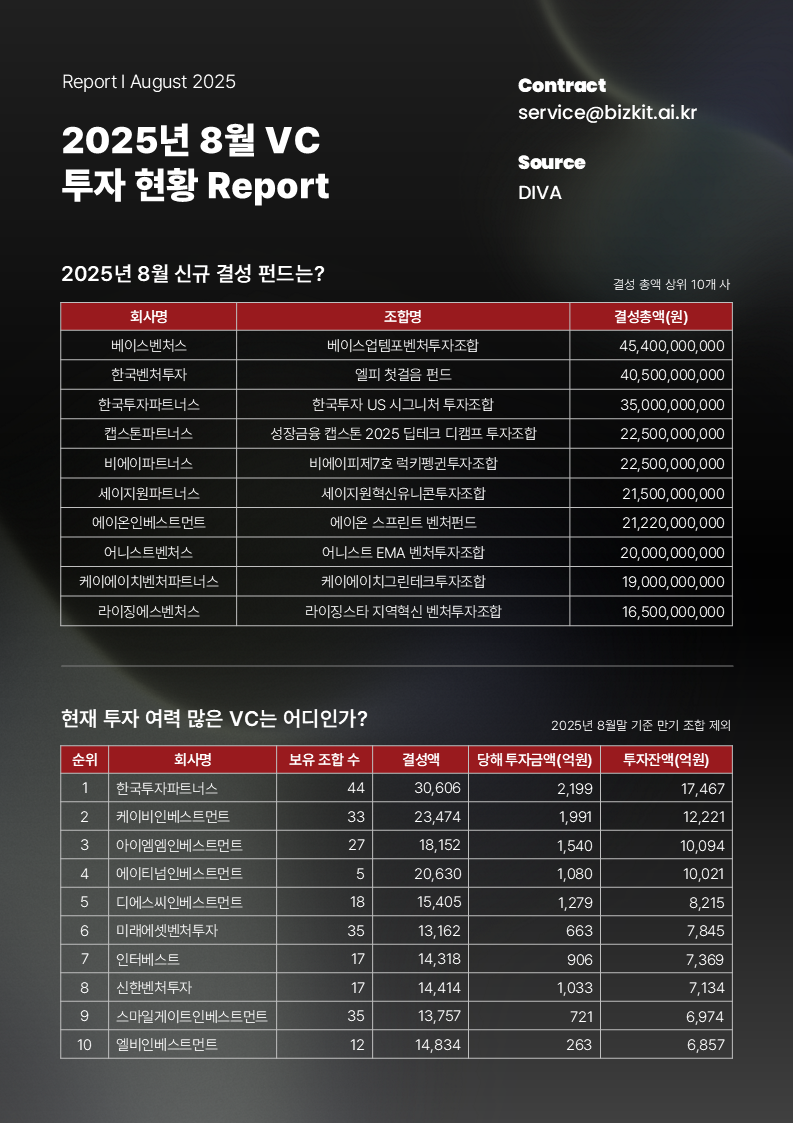 오늘은 실제 데이터로 정리한 2025년 8월 VC 투자 동향을 공유드립니다.