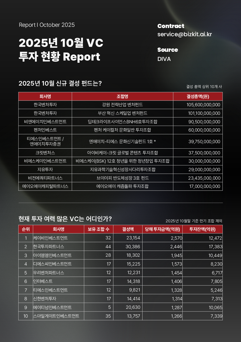 오늘은 실제 데이터로 정리한 2025년 10월 VC 투자 동향을 공유드립니다.